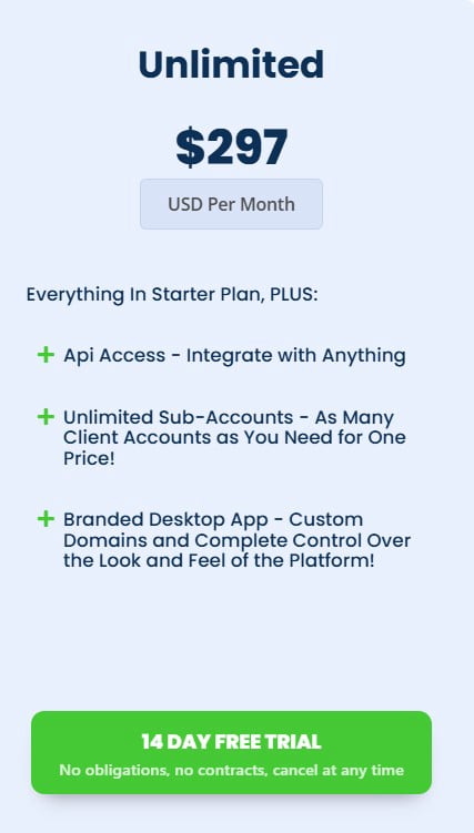 Massive Cost Savings: Replaces 10+ tools (Email, SMS, Funnels, CRM, Calendars) with one flat monthly fee, saving businesses hundreds in "software bloat."