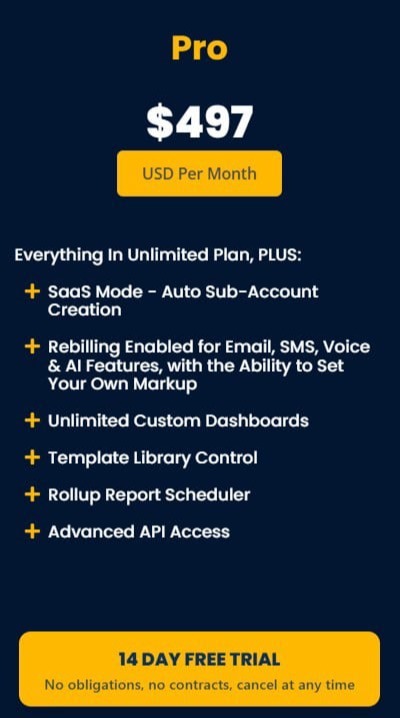 Includes: SaaS Mode, automated rebilling, and advanced AI tools